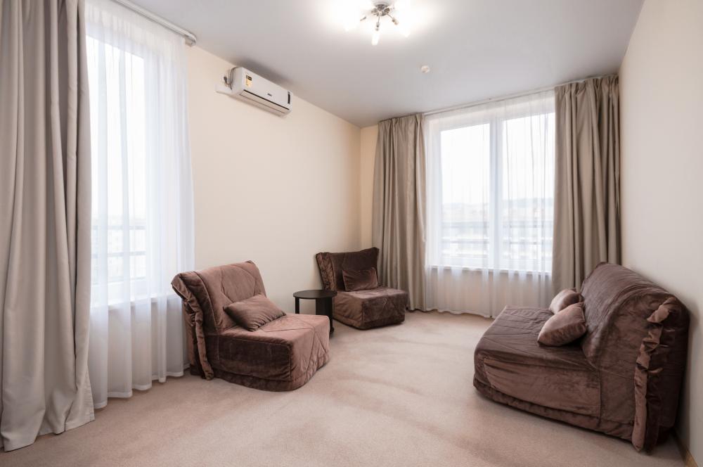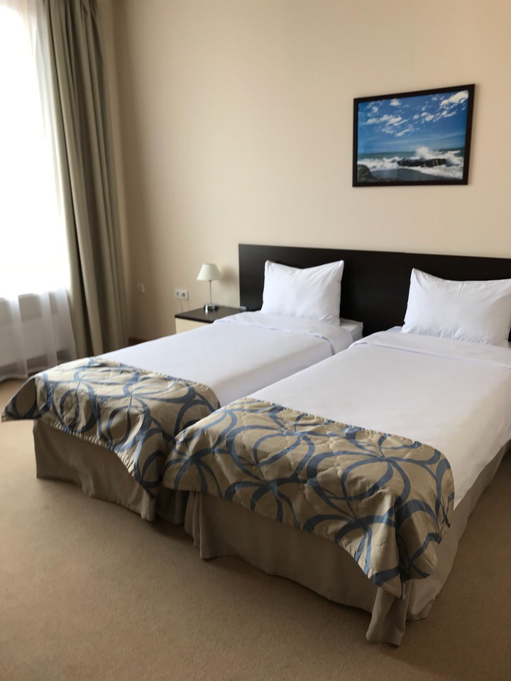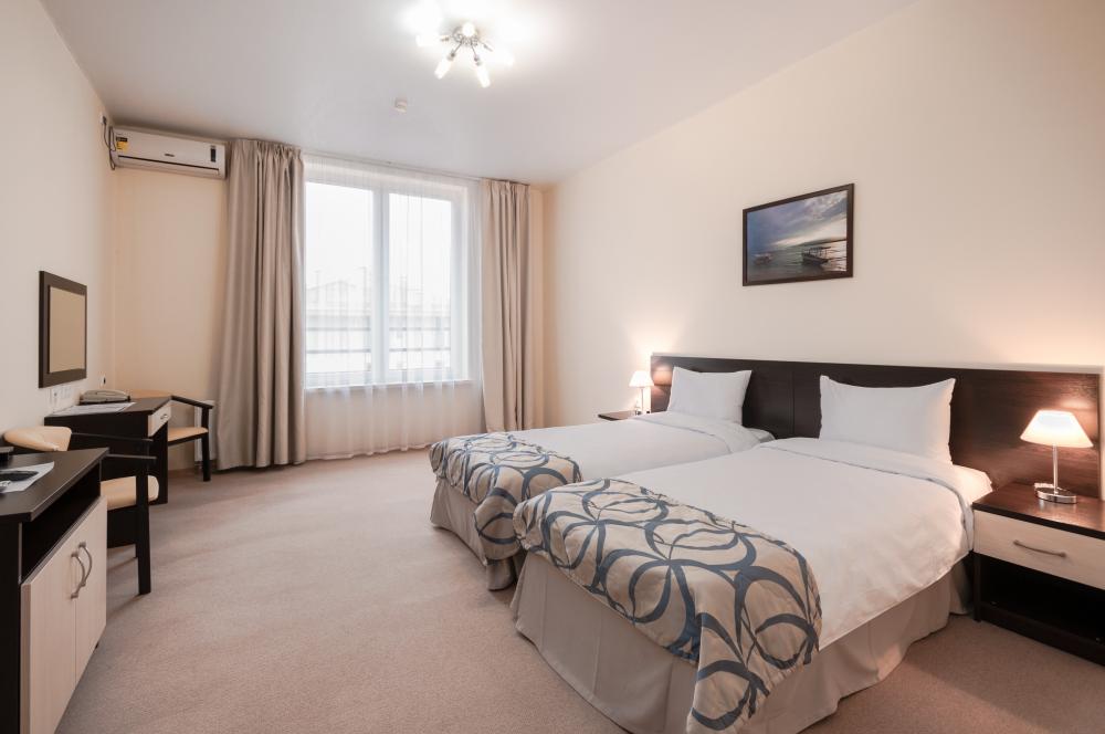 Двухкомнатный номер-люкс в отеле «GAMMA SIRIUS PARK» имеет общую площадь 45 кв.м. В нем есть спальня и гостиная комната. В гостиной находится мягкий уголок. В спальне – две кровати размером 90*200 см и прикроватные тумбочки, фен. В каждой комнате установлен кондиционер. Также имеются телевизор, телефон и мини-бар для охлаждения напитков. Гости смогут по достоинству оценить стильное дизайнерское оформление и современную технику, обеспечивающую комфортное времяпрепровождение.